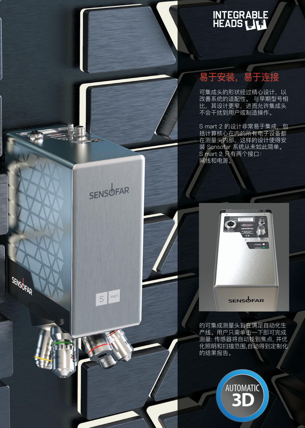 测量头包含了计算核心及所有电子设备,易于集成;