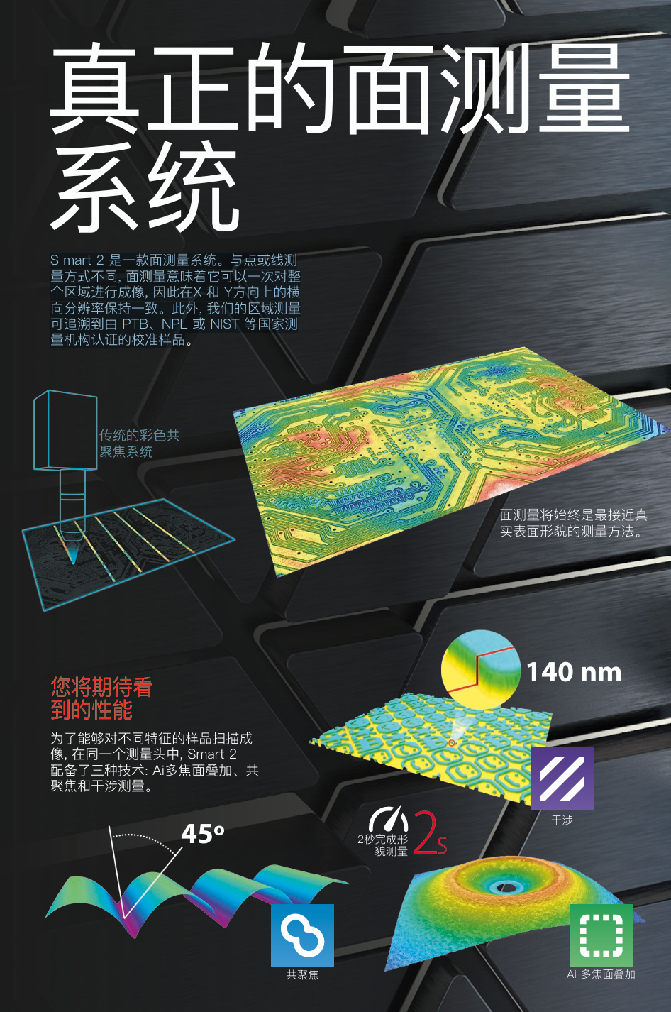 干涉+共聚焦测量头,对横向分辨率、准确性和重复性有高要求的标准时,更容易满足;